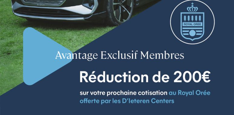 Conditions : Offre valable jusqu’au 1/12/2022 pour tous les membres du Royal Orée, en ordre de cotisation au moment de la commande et pour les membres de sa famille vivant sous le même toit (justificatif à fournir). La réduction sur la cotisation à venir sera accordée après signature du bon de commande et vérification avec le Royal Orée.