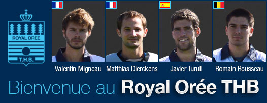 Tous nos jeunes talents ont confirmé rester en Bleu la saison prochaine mais l’Orée est également très heureuse de pouvoir vous annoncer que son équipe Messieurs 1 accueillera 4 nouveaux joueurs pour la saison 2014-2015. Bienvenue à Matthias Dierckens (F), Valentin Migneau (F), Javi Turull (E) et Romain Rousseau (B).
