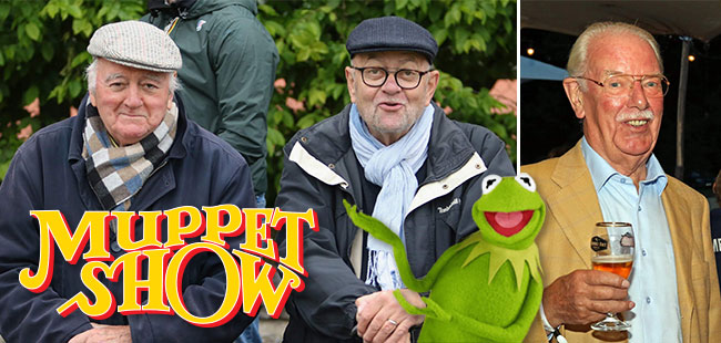 Comment sont-ils venus jusqu’au terrain? Qui les a déposés ici? Nul ne le sait. Mais ils sont là. Et bien là! Généralement, une bonne demi-heure avant le début de la rencontre. Un peu pour éviter les bousculades et autres tracasseries d’avant-match. Mais surtout pour être absolument sûrs et certains d’une chose : que personne n’ait osé ou même imaginé prendre leur place. Ils sont là, assis sur un banc, «leur» banc! Toujours présents aux premières loges. Pour parler et blaguer entre eux ou avec quiconque se prêterait au jeu. A leur jeu. Car il s’agit surtout d’y aller de commentaires en tout genre lorsqu’ils regardent le spectacle. Mais ils en oublieraient, les bougres, qu’au bout d’un moment, le spectacle c’est eux. Très vite, nous ne sommes déjà plus au hockey, nous sommes au théatre. C’est le «Muppet Show»!