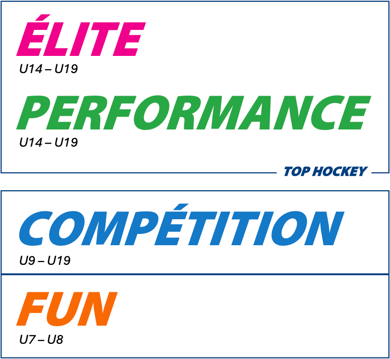 - Les équipes Compétition sont destinées aux joueurs souhaitant pratiquer le hockey dans un cadre compétitif tout en poursuivant leur développement sportif et en appréciant le plaisir du sport.