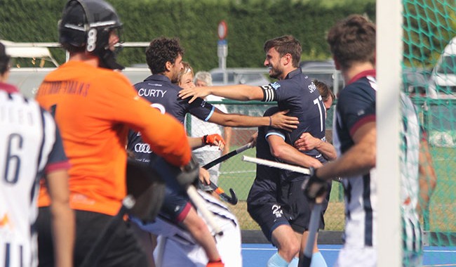 1e mi-temps (0-4). Pas de round d’observation, personne n’est venu pour rigoler, les attaques et contre-attaques pleuvent. Nicolas De Kerpel et Amaury Ceusters ont une franche occasion à laquelle répondent immédiatement Max Branicki et Max Plennevaux. Le premier but est inscrit par Tomi Domene sur PC à la 5e minute. L’Orée mène 0-1. 7e, le jeune Max Langer (tout juste 16 ans) est à la conclusion et trompe Timmermans d’une pichenette. C’est 0-2. 16e, Philippe Simar inscrit le troisième but des Bleus, 0-3. 17e, Max Plennevaux enfonce le clou et score le 0-4. On croit rêver.