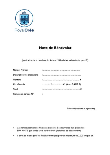 - Seules les prestations accompagnées de leurs détails et reprises dans la note de bénévolat (formulaire .doc) seront payées.