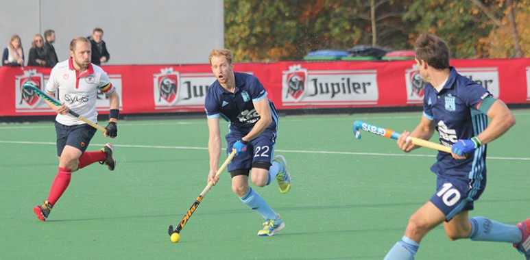 La seconde mi-temps commence de la même façon dont s’est terminée la première. Arnaud Flamand doit à nouveau s’employer pour préserver le 0-0. Sur la phase suivante, c’est à l’Orée de se montrer. Les Bleus réalisent une phase magnifique initiée par Charles Masson, qui passe la balle à Facu Callioni dans le cercle. Le n°10 oréen se montre collectif et cède la balle à Julien Temmerman qui l’écrase sur le piquet gauche du but de Schoo Ians, alors que l’Argentin aurait pu tirer lui-même au goal, d’autant plus que le portier louvaniste sort bien sur Temmerman. Sur la contre attaque qui suit à la 41e minute, les joueurs de Louvain jouent vite une faute, contestée et discutée par les Oréens. Les universitaires en profitent pour jouer rapidement et surprendre Arnaud Flamand qui ne peut rien faire sur la frappe en revers de Willy Garcia, bien esseulé dans le cercle. Trois minutes plus tard, l’arbitre offre un PC à l’Orée (sur une faute très légère) mais Jay Dekeyser ne profite pas de ce cadeau pour inscrire le premier but des Bleus. A la 45e minute, Pol Solano fait son retour sur le terrain, heureusement la blessure ne semble pas trop grave. Dans ce troisième quart-temps, ce sont les Boys qui ont pris le jeu à leur compte. Ils obtiennent un second PC grâce à Jay Dekeyser. Le penalty est un peu manqué par l’Orée mais ils parviennent quand même à provoquer un autre PC, après cafouillage dans le cercle et de multiples tentatives de tirs au goal. Dekeyser est à nouveau à la conversion mais voit son sleep arrêté par le gardien louvaniste. L’Orée pousse pour revenir au score et se procure encore un PC alors que la fin du troisième quart-temps est sifflée. Cette fois-ci, c’est Bergner qui se charge de tirer le penalty mais son sleep est également repoussé par la défense.