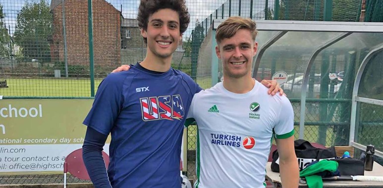 Les USA viennent tout de même de créer la surprise en battant l’Afrique du Sud. « L’équipe est assez difficile à réunir, certains joueurs étant basés sur la côte Ouest des USA, d’autres sur la côte Est, et d’autres en Europe. On a fait un stage de deux semaine à Malaga en janvier, un autre en Corée en avril, et une préparation de 15 jours en Europe, avec des matches contre des équipes néerlandaises (3 jours); et aussi des rencontres face à l’Irlande (photo avec Lee Cole de l’Orée). On est arrivé ici en Inde 5 jours avant le tournoi. Le premier entraînement n’a pas été facile: il fait étouffant. »