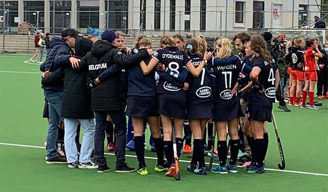 Contre toute attente cependant, un mauvais contrôle de balle d’une défenseuse bleue dans les 25 permet à une joueuse locale d’exécuter une longue rentrée en touche jusqu’au bord de cercle d’où une coéquipière tire vers le piquet gauche. La centre-avant namuroise passe in extremis devant son chien de garde et tipe la balle en revers au dessus de la gardienne (1-0). Peu de temps après, Charlotte Franck sauve du revers un tir au goal d’une Rouge qui se retrouve toute seule devant Christina Meeus. Ce n’est pas du tout le scenario que les supporters ont imaginé pour ce début de rencontre.