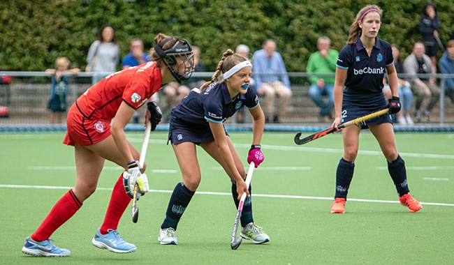 Il ne faut pas attendre longtemps pour savoir de quel côté va pencher la balance. Après cinq minutes de jeu, l’Orée mène 2-0 suite à des concrétisations de Clara Van Espen et Hélène Delva. A la 10e minute de jeu, Ophélie Vincent tente sa chance en coup droit en bord de cercle et la balle passe sans problème derrière la ligne de but (3-0). Peu de temps après, Ophélie voit l’appel de Clara sur la ligne de fond, contrôle de balle et déviation pour Claire Barry qui n’a plus qu’à la pousser dans le goal (4-0). C’est vrai que l’adversaire manque de résistance et ouvre fortement l’espace mais les joueuses de l’Orée, au lieu d’y aller de leurs petits dribbles personnels, trouvent leurs coéquipières avec des longues passes parfaitement dosées. La balle circule correctement entre les lignes pour aboutir dans le cercle adverse. Astrid Bonami n’hésite pas à se coucher pour marquer le 5e goal de l’Orée à la 32e minute de jeu (5-0). Toutes les Namuroises sont regroupées dans leur cercle, ce qui n’empêche pas nos Bleuettes d’obtenir leur dernier PC avant la mi-temps, qui ne sera pas concrétisé.