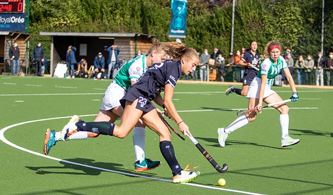 L’Orée entame la seconde période en étant bien dans le match. La balle circule correctement de gauche à droite en passant par l’arrière. Malheureusement, les dernières passes vers les attaquantes dans le cercle manquent parfois de précision. Les quelques tirs au goal sont stoppés par la gardienne. Une balle rapidement jouée dans les 25 offre le premier et seul PC aux joueuses locales. Le sleep direct d’Astrid ne donne rien. Le match est très engagé de part et d’autre avec une possession de balle à l’avantage des Bleues. Cet avantage se concrétise par un splendide tip-in de Clara Van Espen, plein de lucidité, en pleine lucarne, suite à un centre d’Aurélie Kreush sur la droite (2-0). Quelques secondes après, les spectateurs pensent revivre la phase miroir de la précédente sur un centre d’Astrid Bonami à gauche mais le tip-in de Clara est dirigé sur le gardien. La suite de la rencontre est relativement partagée entre les 2 équipes. Christina Meeus sort du stick un envoi cadré d’une adversaire. Temse cadenasse très bien les dernières attaques oréennes et le score en reste là.