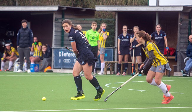 La seconde mi-temps reprend avec une action plus ou moins dangereuse de part et d’autre. A la huitième minute de jeu, une joueuse du Well envoie une balle à hauteur d’épaule dans le cercle. Cette balle, qui pour la plupart semble dangereuse, est déviée au rebond par une coéquipière (0-1). La course rapide et le poignet gauche d’Adélaïde d’Ydewalle sur le flanc gauche fait parvenir la balle à Astrid Bonami dont la déviation est arrêtée par la gardienne adverse, bien alerte sur sa ligne de but. Celle-ci fait encore parler d’elle en sauvant du bout du stick une balle en l’air, bien posée par la même Adélaïde. Le temps s’égrène. Depuis le début de la rencontre, le Wellington joue très bien, à un niveau supérieur au nôtre. Ne pas perdre trop de temps à céder la balle à une coéquipière, sinon elle est chipée par l’adversaire. Les contrôles de balle laissent à désirer. La défense oréenne continue de sauver les meubles en maintenant un fragile espoir. Les spectateurs, venus nombreux pour ce premier super Sunday de l’année, continuent d’encourager leur équipe fanion en pensant sans doute qu’il faudra aller chercher la victoire au match suivant. Il ne reste plus que cinq minutes à jouer lorsqu’Ophélie Vincent joue rapidement une faute sifflée aux 25 : un dribble suivi d’un shoot de revers mal contrôlé par l’adversaire. La balle atterrit dans le stick de Clara Van Espen qui la tippe derrière la ligne de but (1-1).