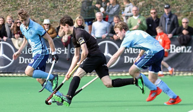 A la 23e minute, Charlier pensait doubler la mise après avoir bien suivi un essai de de Chaffoy mais il trouvait le poteau sortant du but. Un ouf de soulagement pour les Oréens. Les débats s’équilibraient, et nos joueurs combinaient de mieux en mieux, à l’image de cette action à la 27e minute, quand Solano recevait la balle côté droit et pouvait rentrer dans le cercle. Il envoyait un flat puissant au premier poteau, sans pouvoir tromper la vigilance de Gucassoff. Derrière, Flamand veillait au grain, et continuait son festival d’arrêts de grandess classe. Sur une contre-attaque rondement menée, Charlier passait à Truyens qui enclenchait un missile en revers en direction du but. Arnaud, resté sur ses appuis, effectua un arrêt miracle. Ne sachant plus ou se trouvait la balle, il se retourna et parvint à se dégager chanceusement. Meurmans écopa d’une carte jaune (double verte) en fin de premier quart. La domination de nos joueurs était stérile. La première mi-temps avait été assez moyenne.