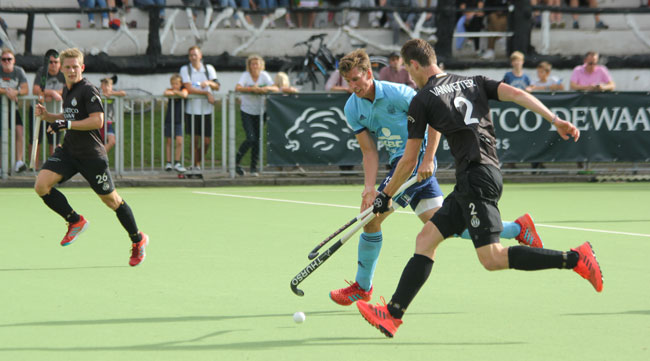 La tactique élaborée par Steve Crauwels déstabilisait la bande à Charlier qui n’arrivait pas à se créer d’occasions dignes de ce nom lors du premier quart d’heure. Du coup, c’est sur penalty corner que les Rats s’appuyaient pour trouver la solution. Sur son deuxième pc, Tom Boon prenait Arthur Thieffry a contre-pied, ce qui permettait à ses couleurs de recoller au score. Malgré ce coup sur la tête à quelques instants de la fin du premier quart temps, l’Orée ne se laissait pas abattre et repartait de plus belle à l’offensive. Et dans les ultimes secondes, Phil Simar faisait sensation en signant le 1-2. Le public local prenait un coup sur la tête alors que nos supporters savouraient le panache et l’opportunisme des Woluwéens. Une nouvelle fois, l’équipe adverse s’en remettait à Tom Boon pour grapiller une unité au marquoir. Et une nouvelle fois, c’était sur péno que la star des Red Lions s’exécutait avec une facilité déconcertante. 2-2, tout était à nouveau à refaire. A part cela, peu de chose à noter dans ce deuxième quart temps si ce n’est un numéro signé Max Branicki. Mais il ne parvenait hélas pas à concrétiser son action.