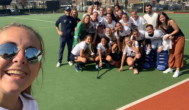 Les spectateurs voient un premier quart temps de toute beauté : possession de balle, enchaînements de passes, combinaisons à faire pâlir le Brésil dans un sport plus populaire… Une oreille attentive au bord du terrain entend les fans de l’équipe adverse dire que ce sont nos Bleuettes qui les ont le plus impressionnés la saison précédente et qu’elles auraient mérité de monter parmi l’élite. Le beau jeu est rapidement payant. Ophélie Vincent récupère une déviation d’Astrid Bonami et trompe la gardienne d’un tir appuyé en coup droit (0-1).