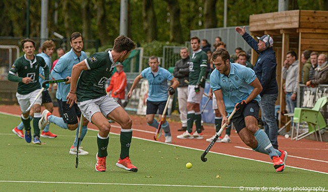 1e mi-temps (1-1). Le match commence sans round d’observation, chacune des deux équipes montrant directement leur style respectif et leurs aspirations. Les Bleus sont bien organisés et la balle circule bien. Les Verts sont agressifs (dans le bon sens du terme) sur le porteur de la balle et agissent en contres rapides. 6e minute, double essai de Philippe Simar suite à une passe de John-John Dohmen. Réaction immédiate du Watducks qui lance William Ghislain, l’attaquant waterlootois fait mouche (1-0). 8e, l’Orée réagit sans attendre. Max Branicki intercepte une passe d’un défenseur, il centre sur Luca Masso qui dévie sur Timothée Clément. Ce dernier marque d’un smash (1-1). 13e, premier PC pour le Watducks, il n’est pas transformé. 19e, essai de William Ghislain. Arthur Thieffry s’interpose. 21e, deuxième PC pour le Watducks, la défense des Bleus veille au grain avec à la manœuvre un inusable Juna Beckers. 31e, troisième PC pour les Canards, nouvel échec. 33e, bel essai en revers de Tomi Domene. La balle passe juste à côté du but défendu par Simon Vandenbroucke.